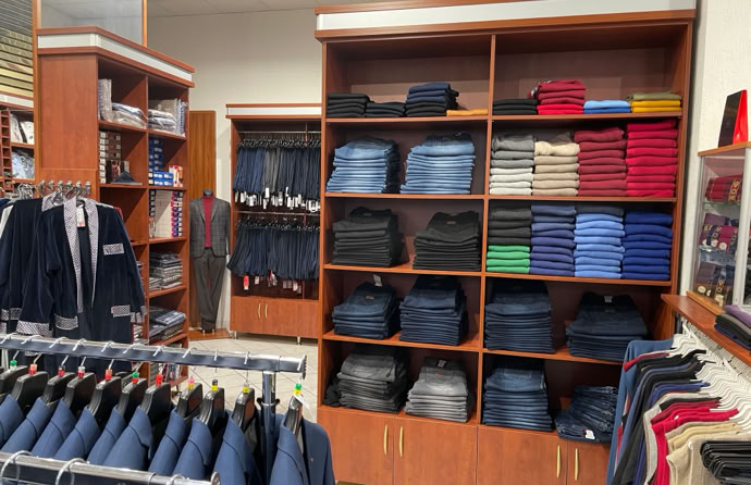 Poprzez naszą profesjonalną obsługę i wieloletnie doświadczenie, z przyjemnością służymy Państwu pomocą w doborze właściwej garderoby. Naszym atutem są obszerne i klimatyzowane przymierzalnie które pozwolą Państwu w komfortowych warunkach na dokonanie właściwego wyboru.